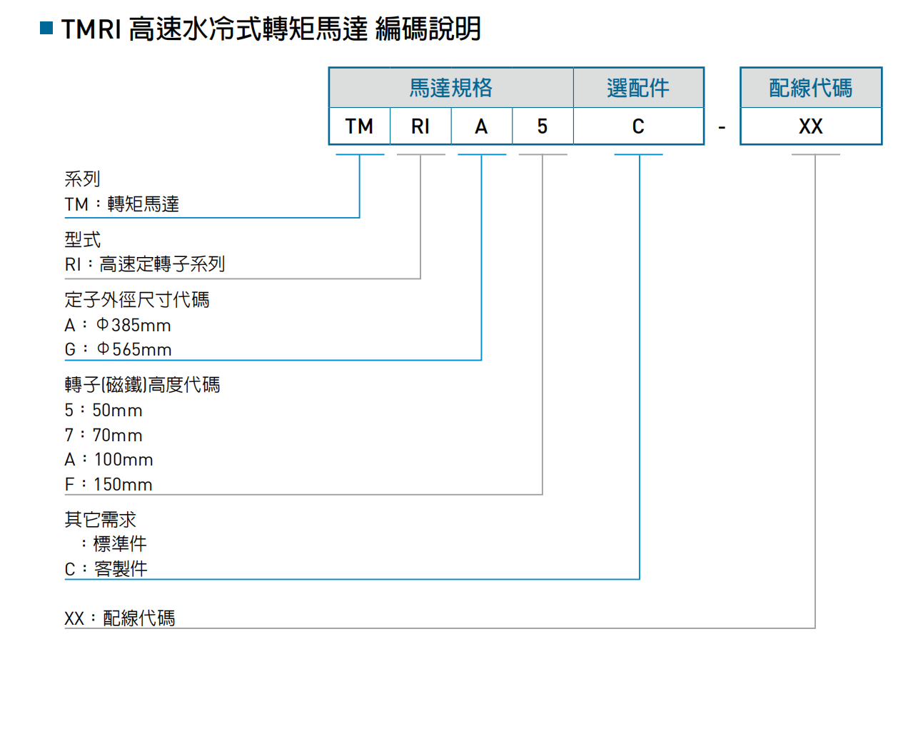 TMRI高速水冷式转矩马达型号有:TMRIA系列,TMRIG系列