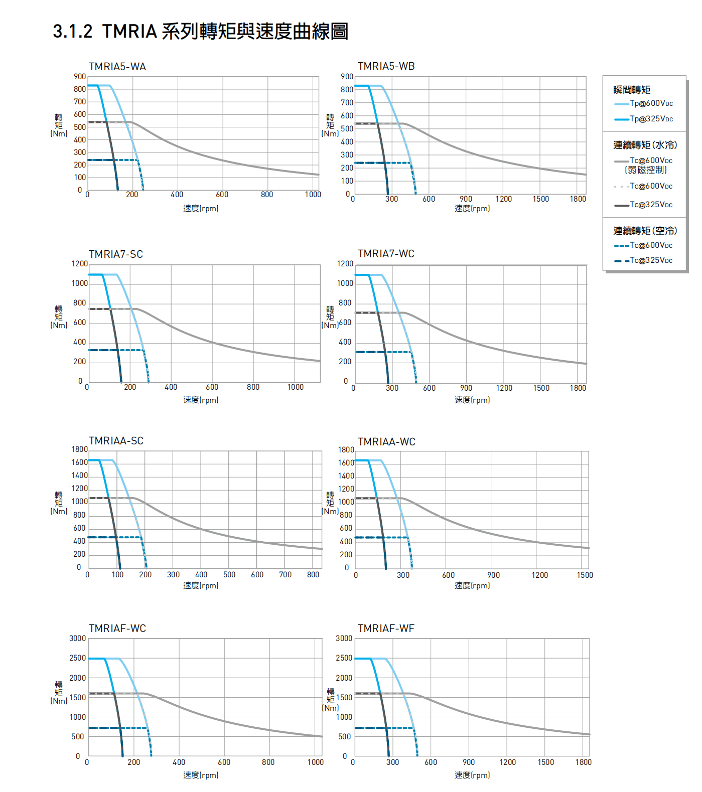 特殊设计,可搭配弱磁控制达到极高转速需求,同时适用各种需要大输出且精准定位之工业用途,水冷式的