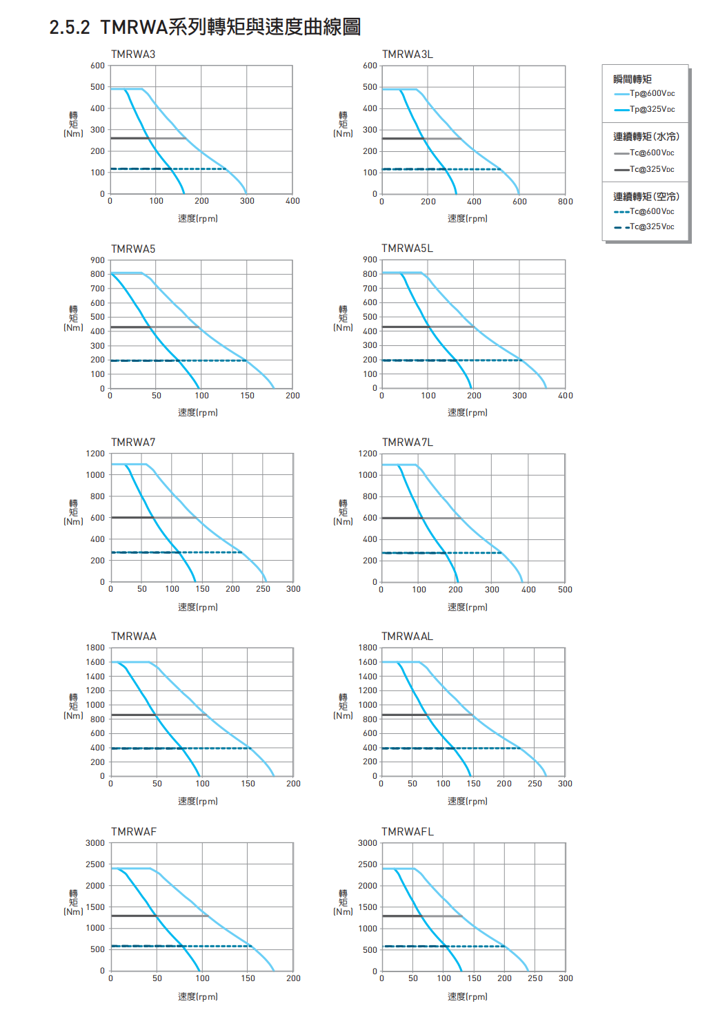 特殊设计,可搭配弱磁控制达到极高转速需求,同时适用各种需要大输出且精准定位之工业用途,水冷式的设计使马达可以持续提供大扭力输出。