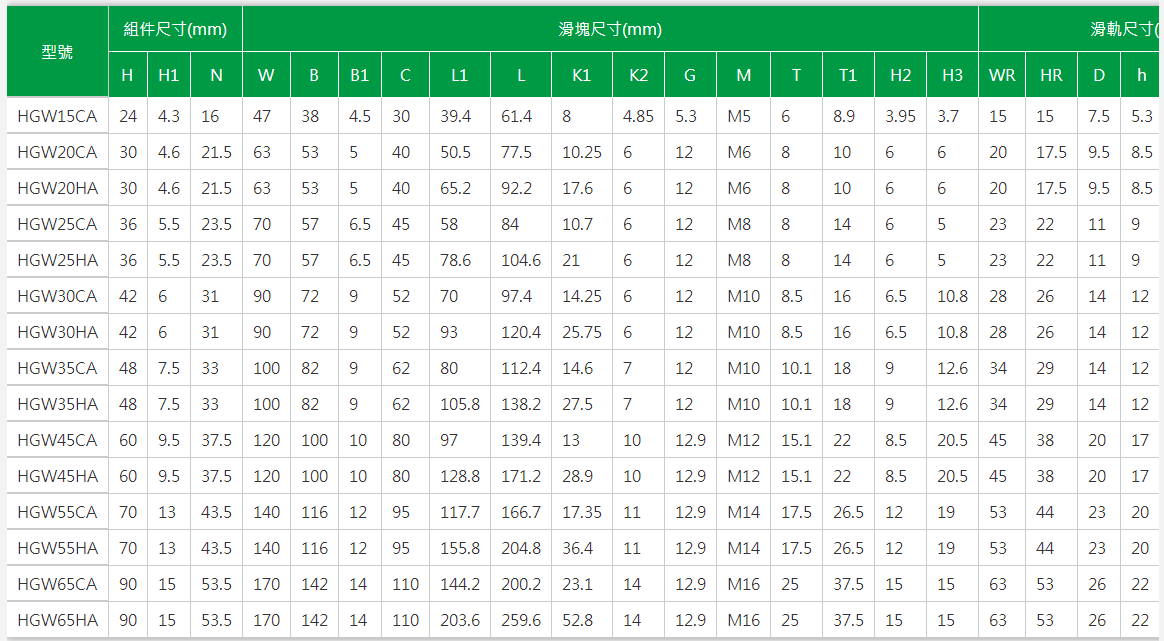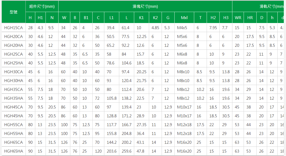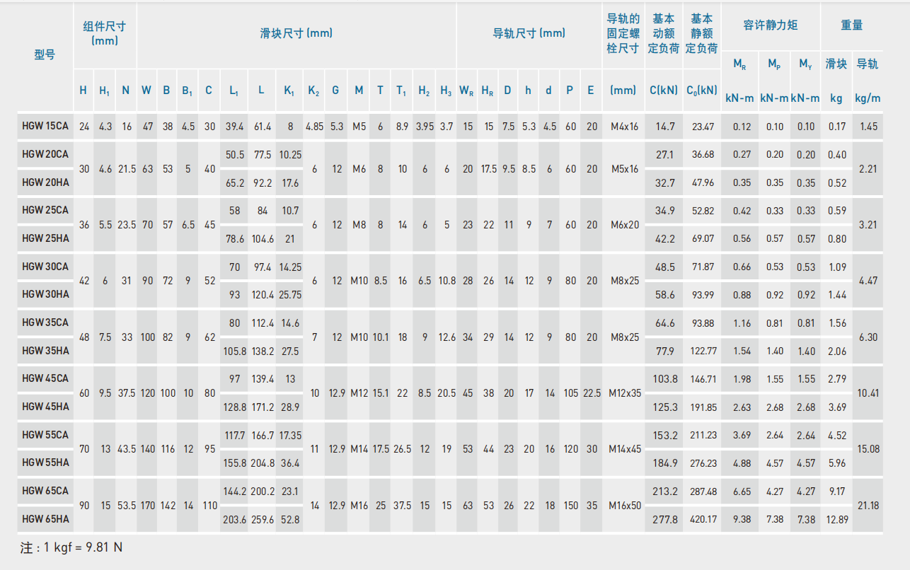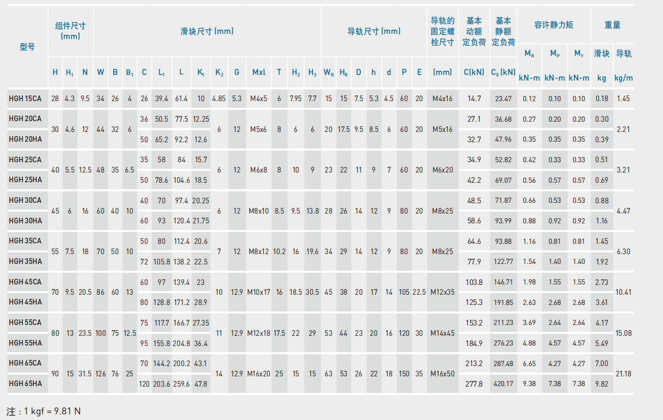 1.HGH15CA、HGH20CA、HGH25CA、HGH30CA、HGH35CA、HGH45CA、HGH55CA、HGH65CA