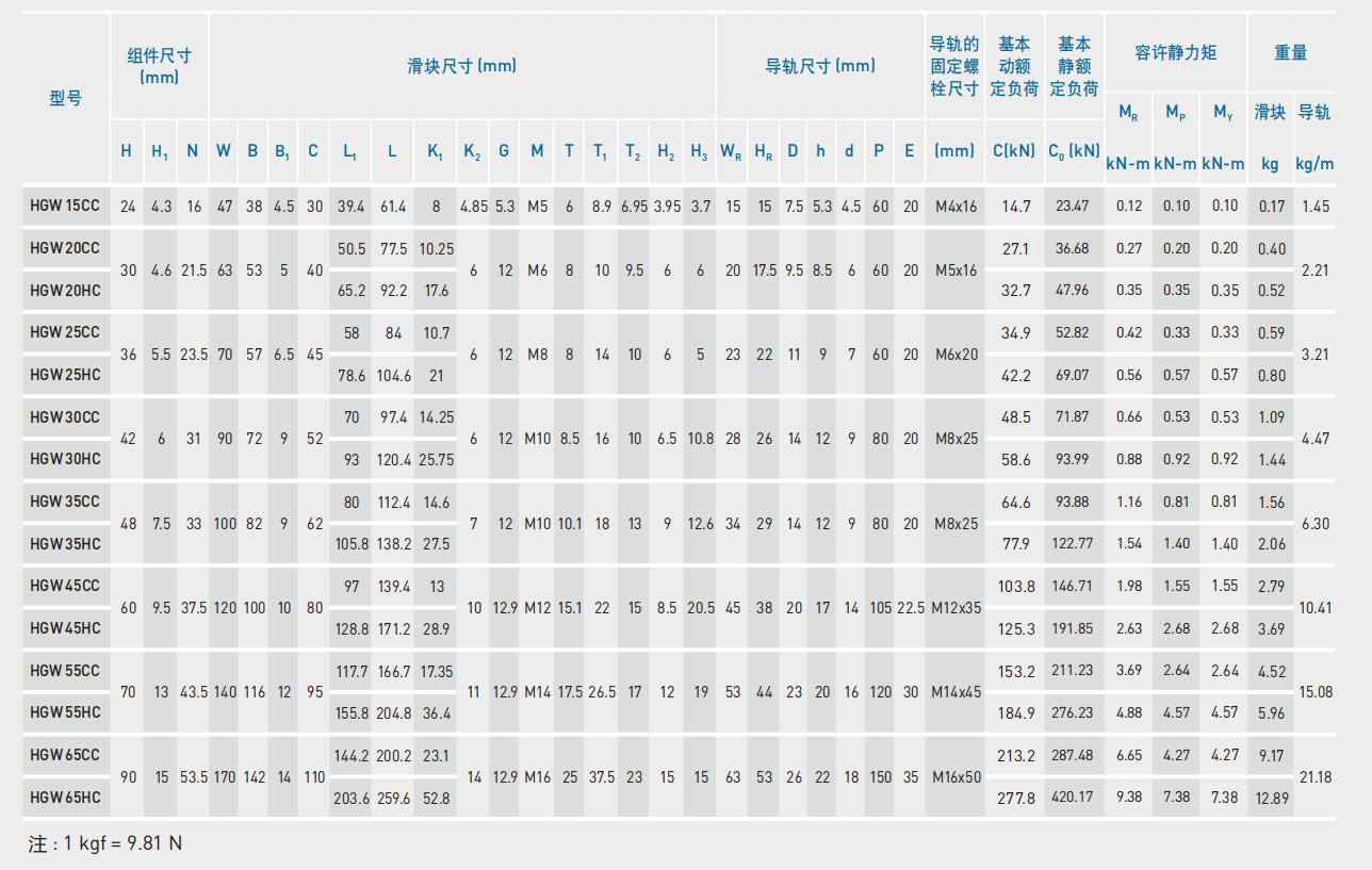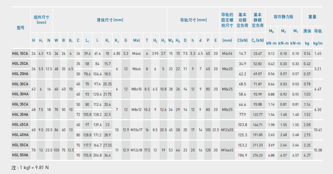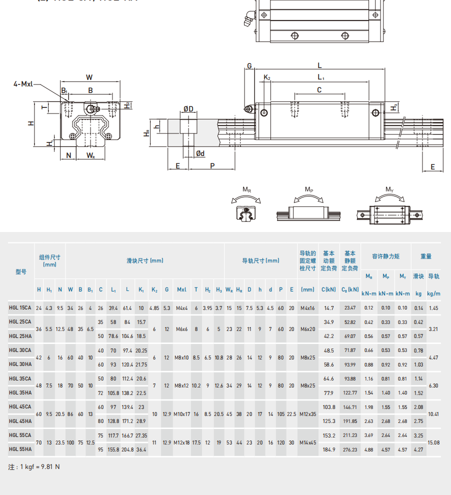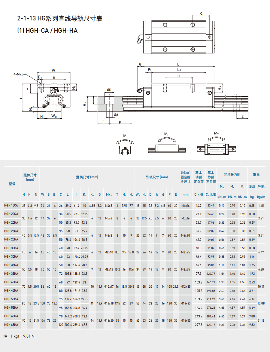 1.HGH15CA、HGH20CA、HGH25CA、HGH30CA、HGH35CA、HGH45CA、HGH55CA、HGH65CA