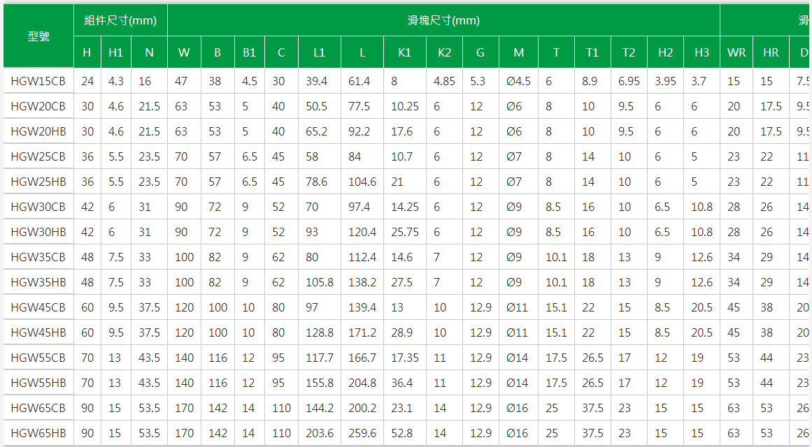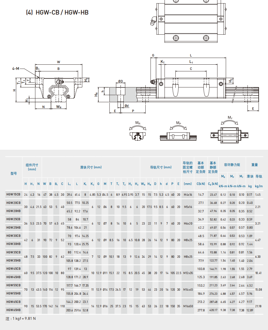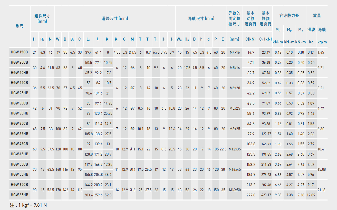 7.HGW15CB、HGW20CB、HGW25CB、HGW30CB、HGW35CB、HGW45CB、HGW55CB、HGW65CB