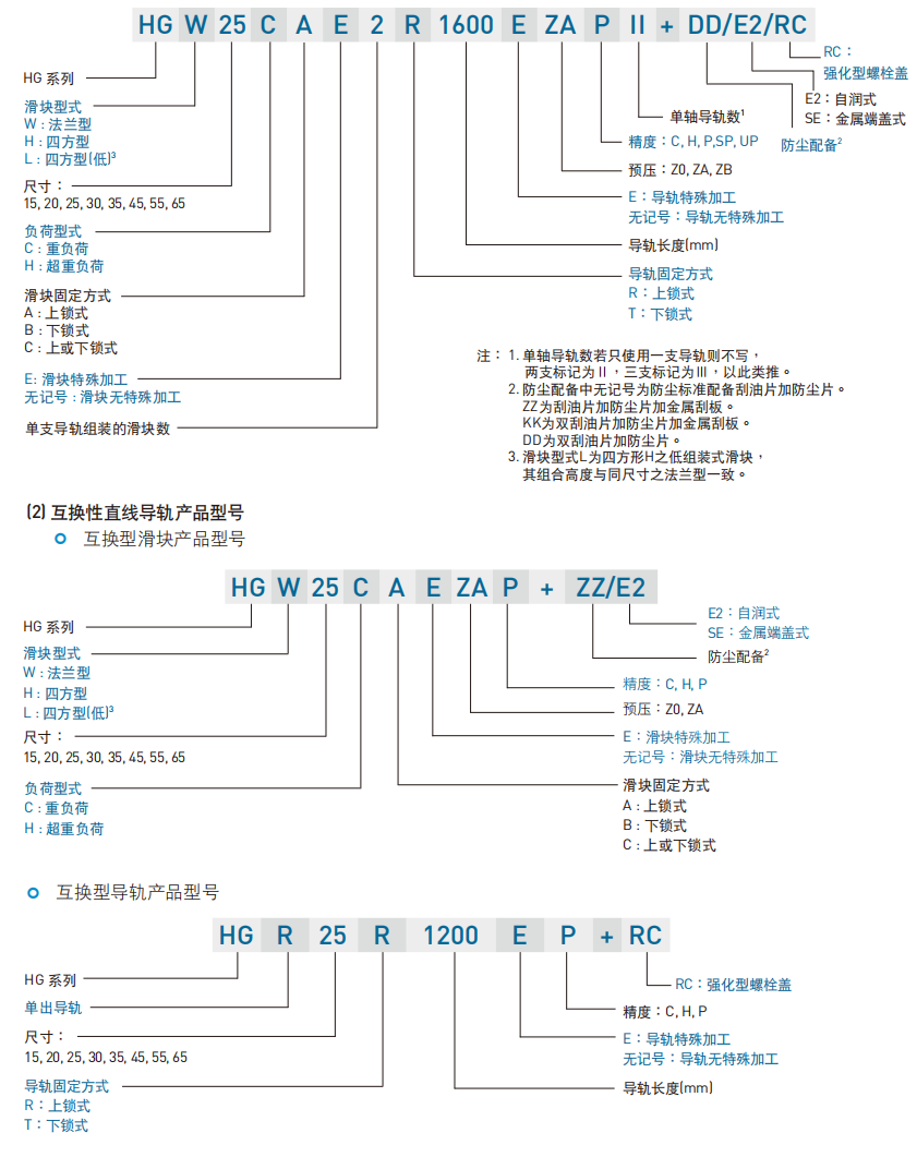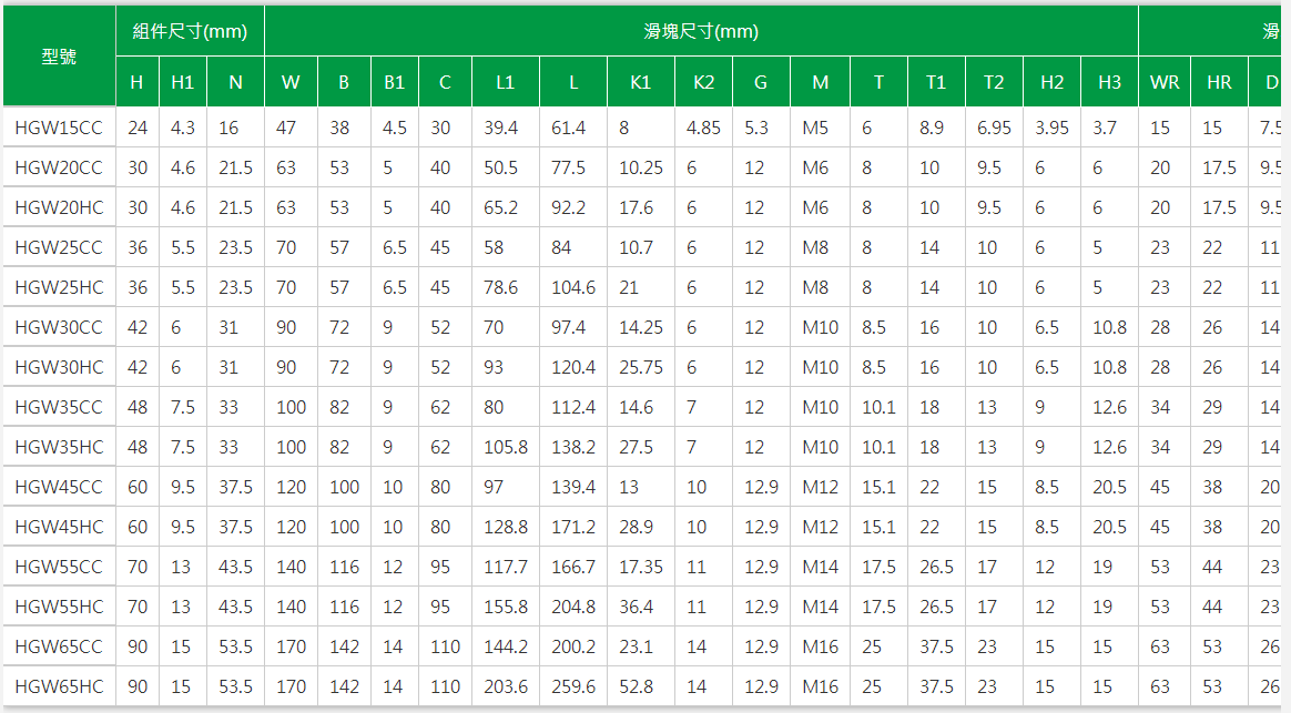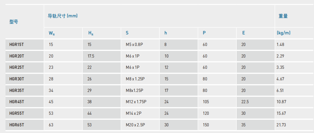 上银(HIWIN)直线导轨系列型号: