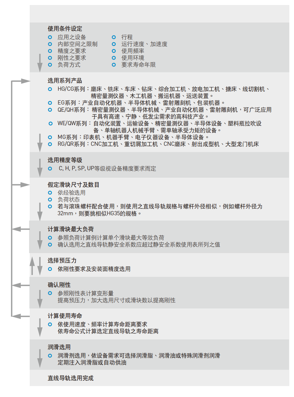 因此部份系列精度具可互换性,客户可依需要订购导轨或滑块,亦可分开储存导轨及滑块,以减少储存空间。