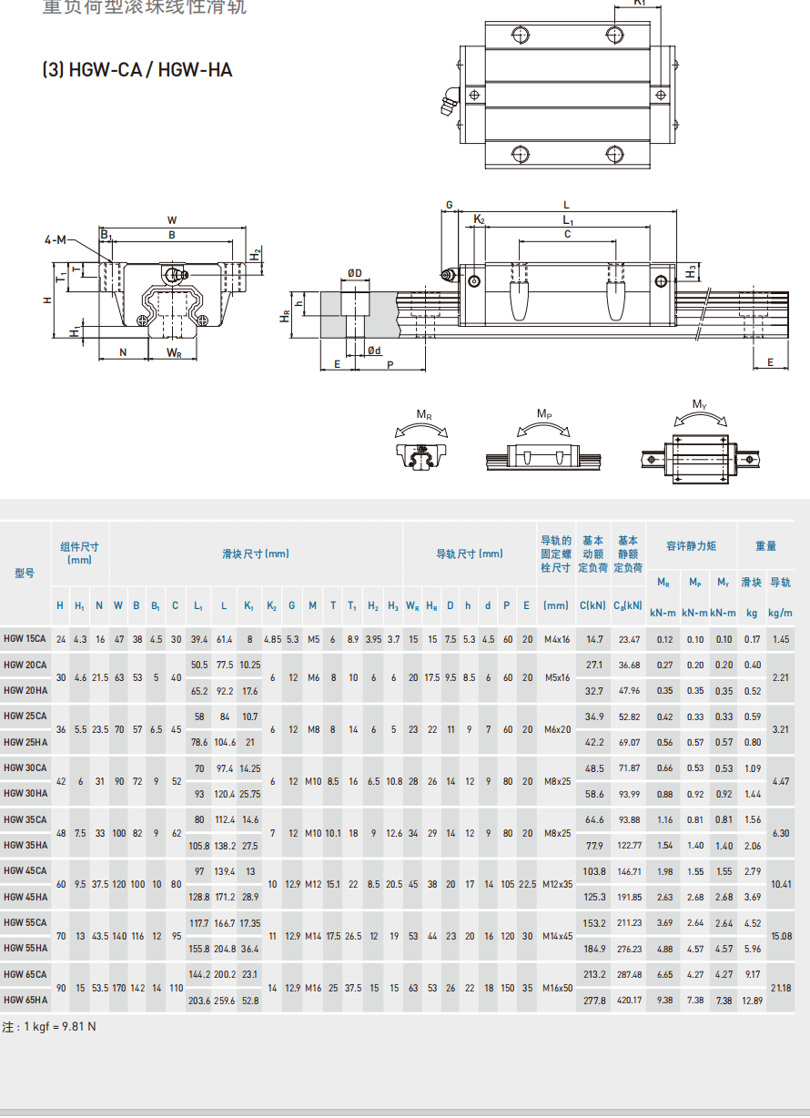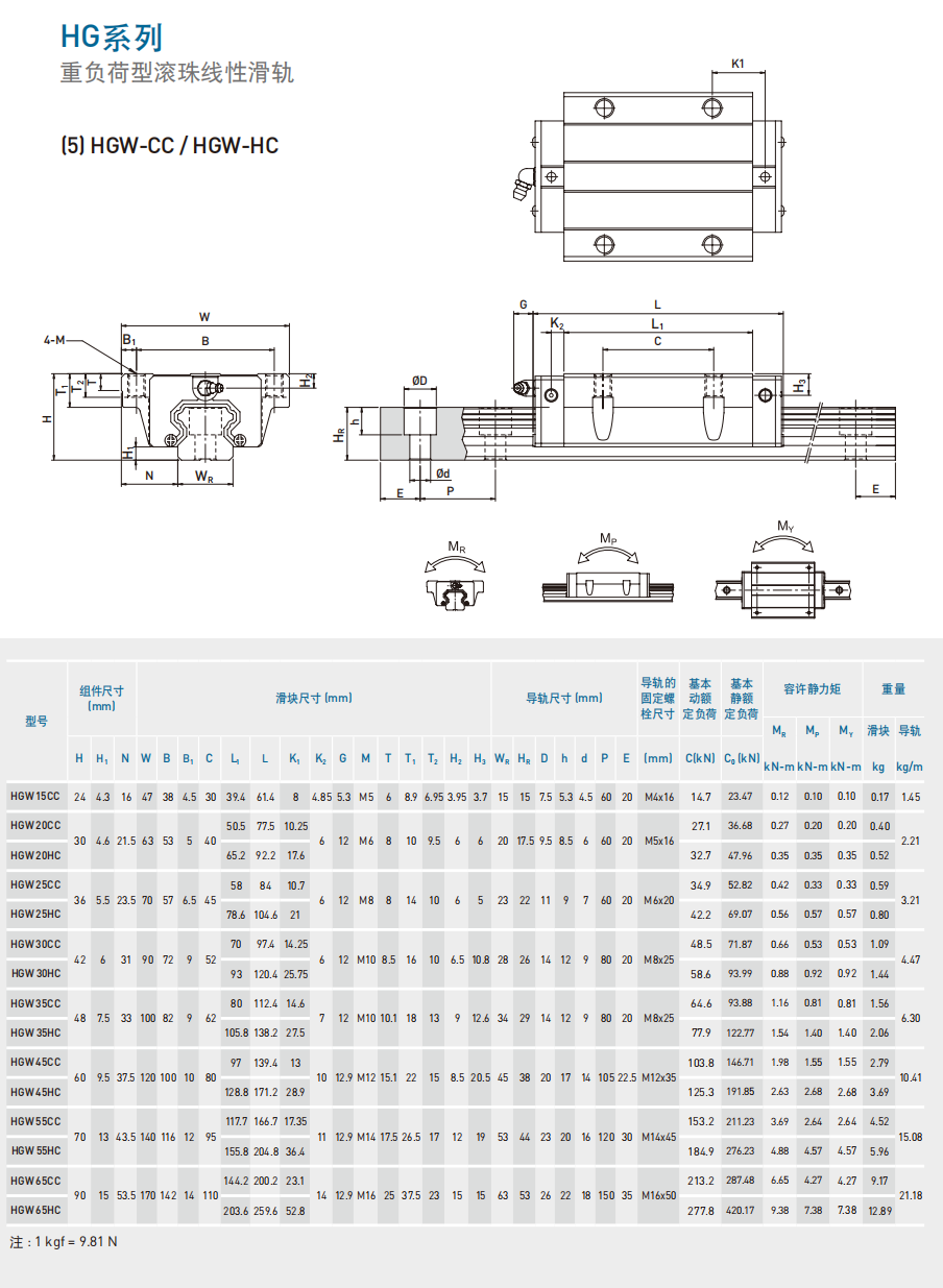 HG系 列一重负荷型滚珠直线导轨