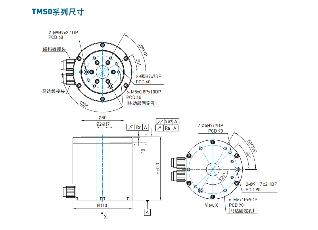 特点:位置解析技术;高效率:直驱马达技术;友善配线:中空轴设计;结构对称:热平衡设计;讯号转换:数位讯号转换处理技术