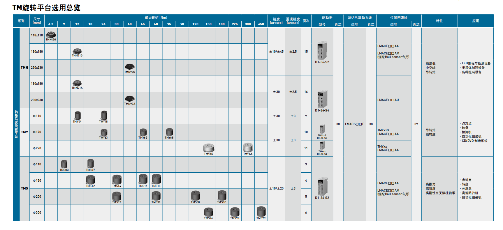 特点:位置解析技术;高效率:直驱马达技术;友善配线:中空轴设计;结构对称:热平衡设计;讯号转换:数位讯号转换处理技术